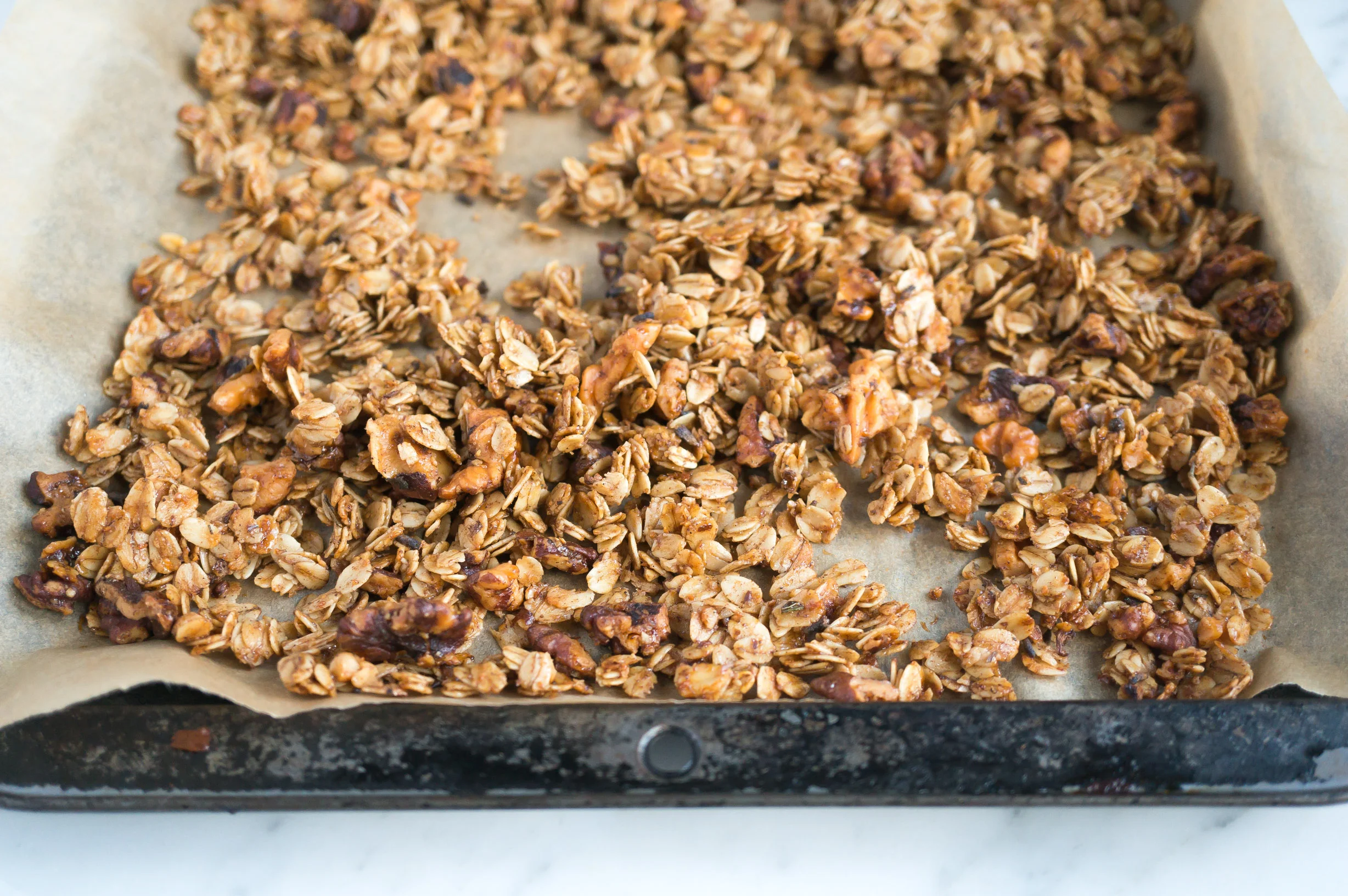 5. Cool granola completely in pan (it will crisp as it cools). Option to sprinkle with brown sugar or coconut sugar if you choose too.